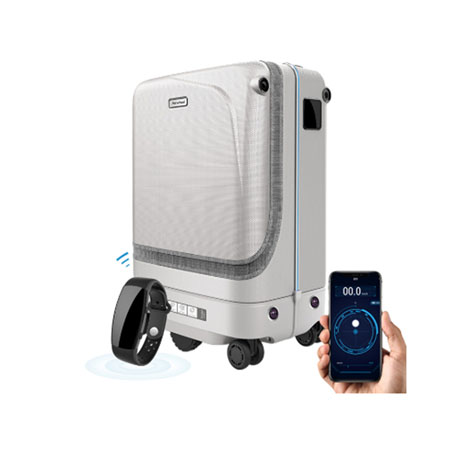 行李箱會(huì)自動(dòng)感知主人的行進(jìn)速度,自動(dòng)調(diào)整跟隨速度,當(dāng)行李箱距離主人超過(guò)3米安全距離,手環(huán)會(huì)及時(shí)震動(dòng)報(bào)警,同時(shí)手機(jī)震動(dòng),發(fā)出報(bào)警聲音提醒。